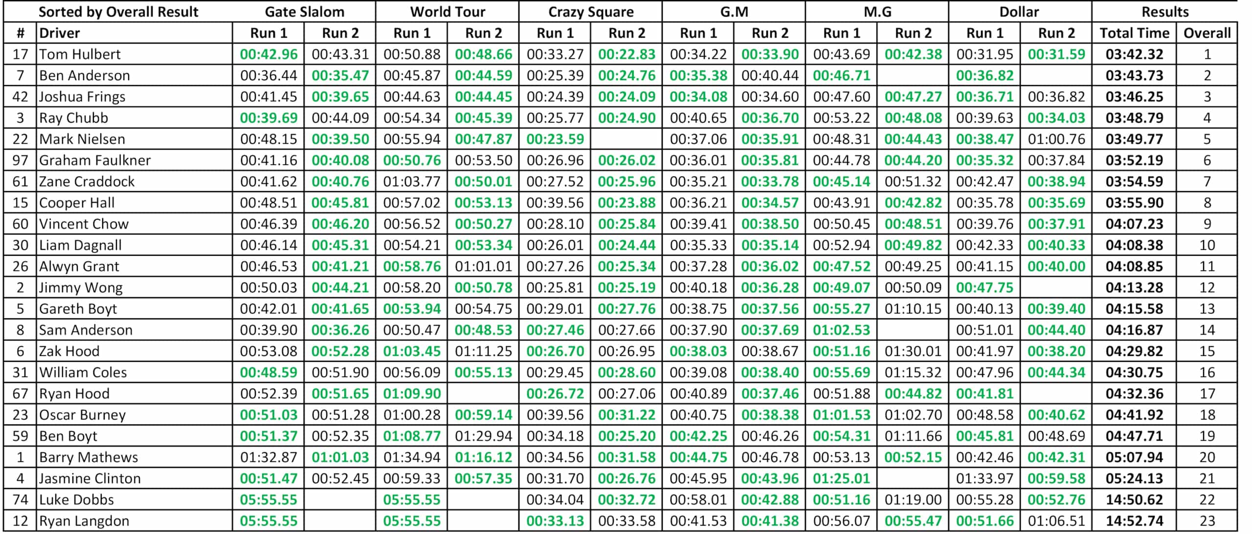 Excel - Results by Overall.