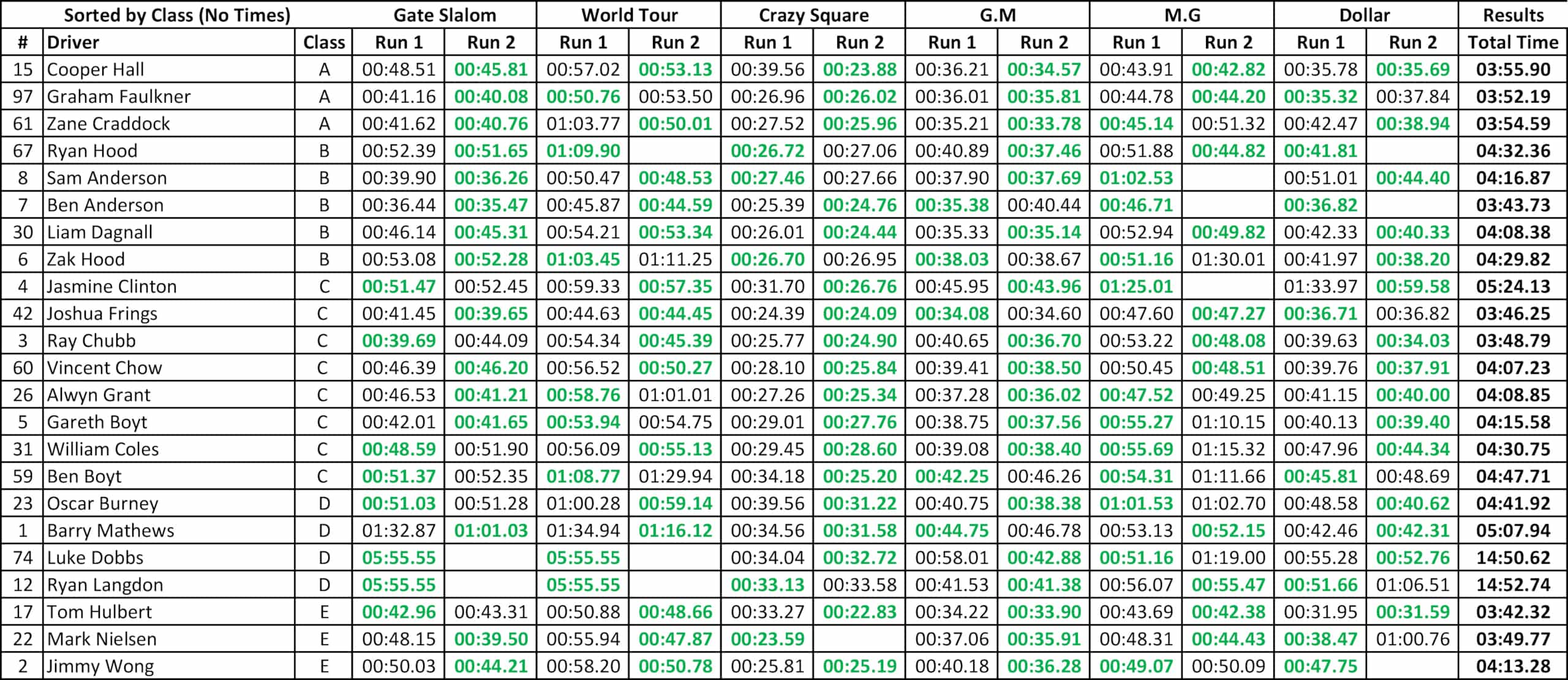 Excel - Results by Class.